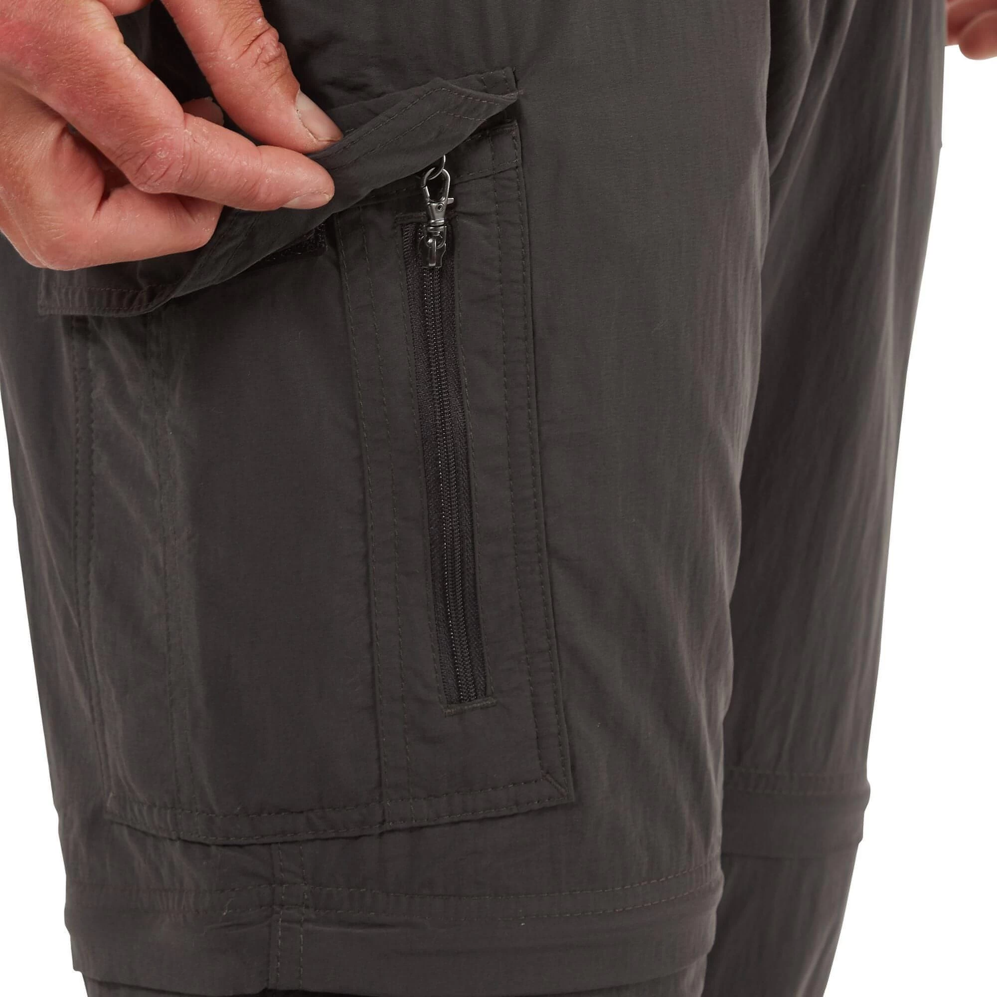 - Pockets and Security – 9 pockets: two mesh hand pockets, one zipped hand pocket, two velcro cargo pockets (including one dry bag), one mobile phone pocket inside cargo pocket, one zip’n’clip security side pocket and two back pockets with velcro tabs.