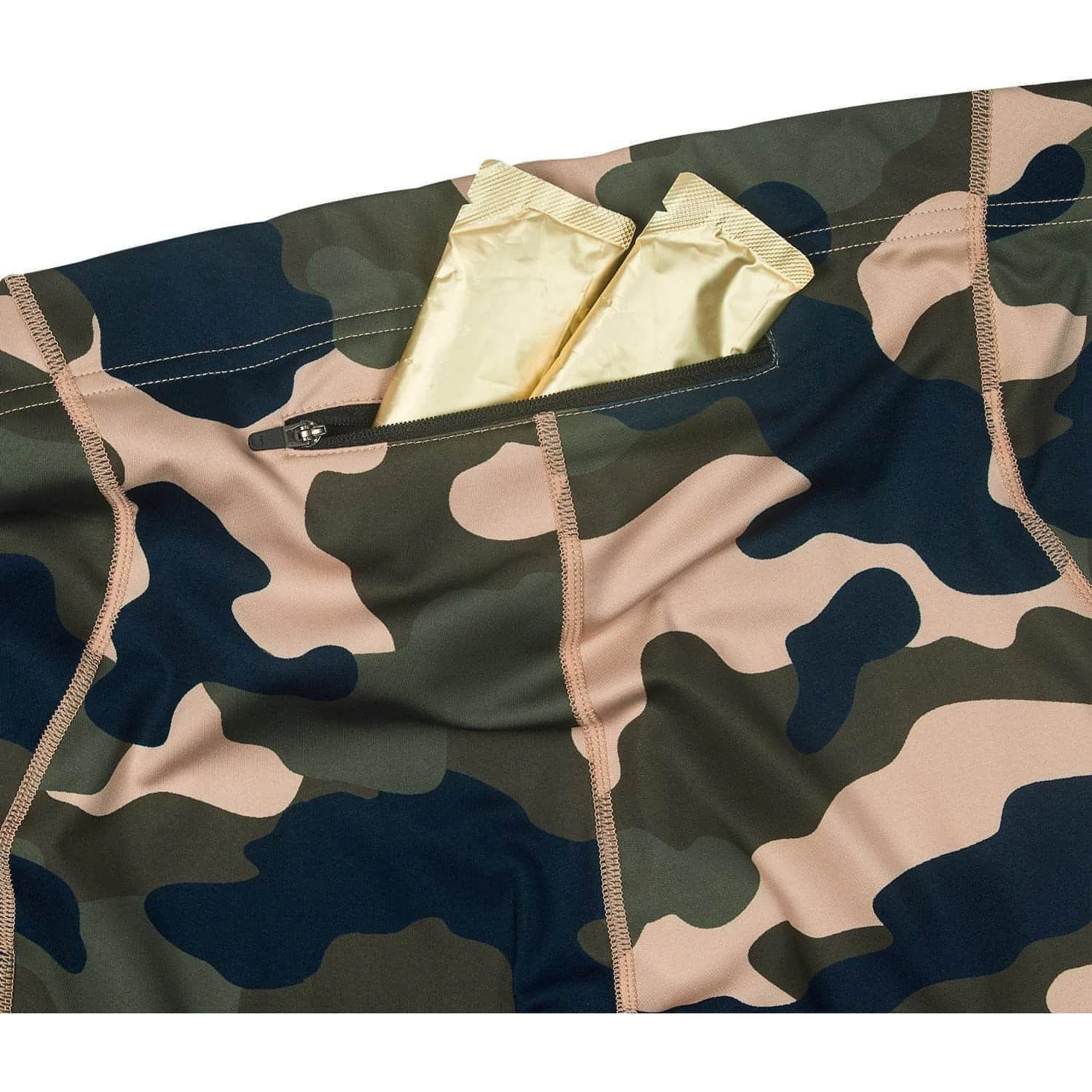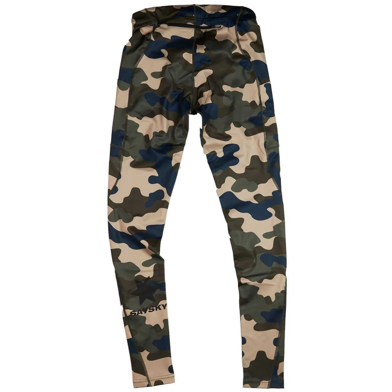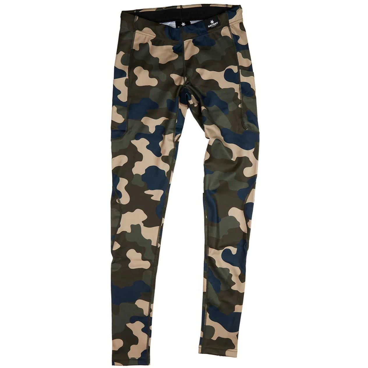The SAYSKY Camo Combat Tights is a pair of unisex running tights with a camo print made from recycled polyester. They come with a classic SAYSKY logo on the back calf and a woven SAYSKY label on the front waistband. The fit is slim and snug. This model is very good for the transitional seasons, where it’s not quite cold enough for a pair of winter tights.